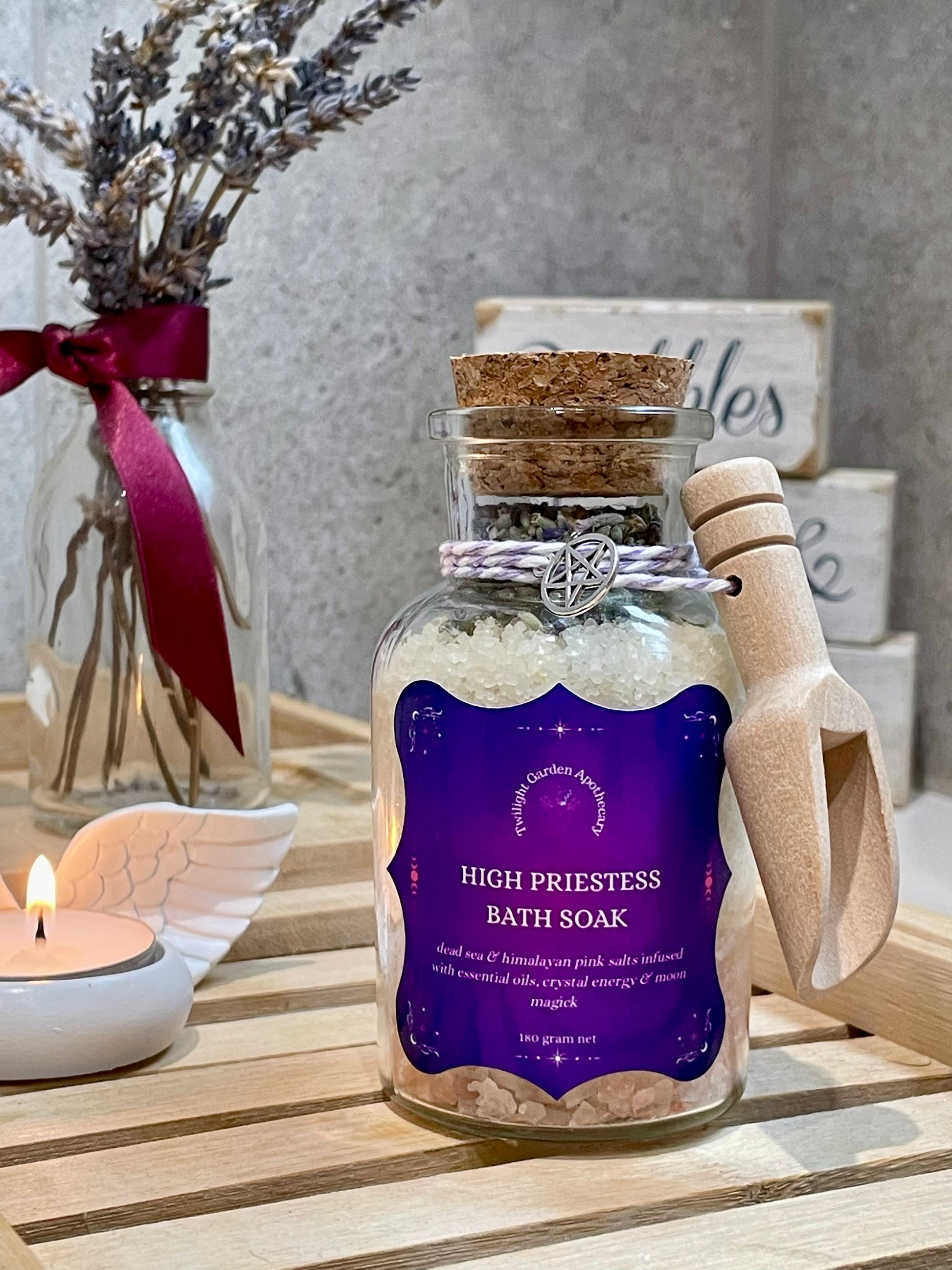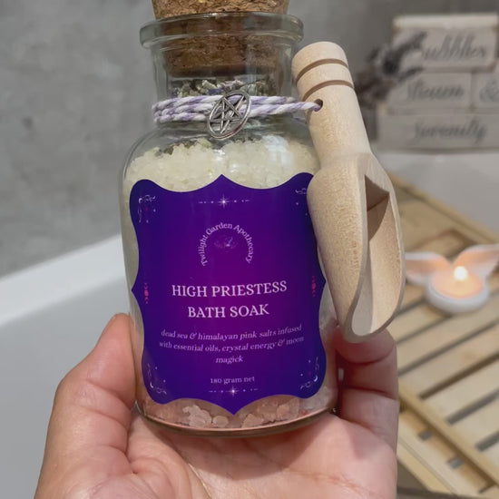 A healing and cleansing bath salt blend infused with full moon magick, crystal essence of moonstone, rhodonite & amethyst brewed under a waxing moon, essential oils & botanicals. Pour under a warm running tap, and relax & inhale the essential oil blend aroma whenever you need to re-connect to your higher self.